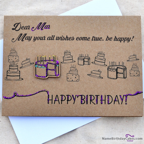Download Happy Birthday Mar cake, wishes, and cards. Send greetings by editing the Happy Birthday Mar image with name and photo.